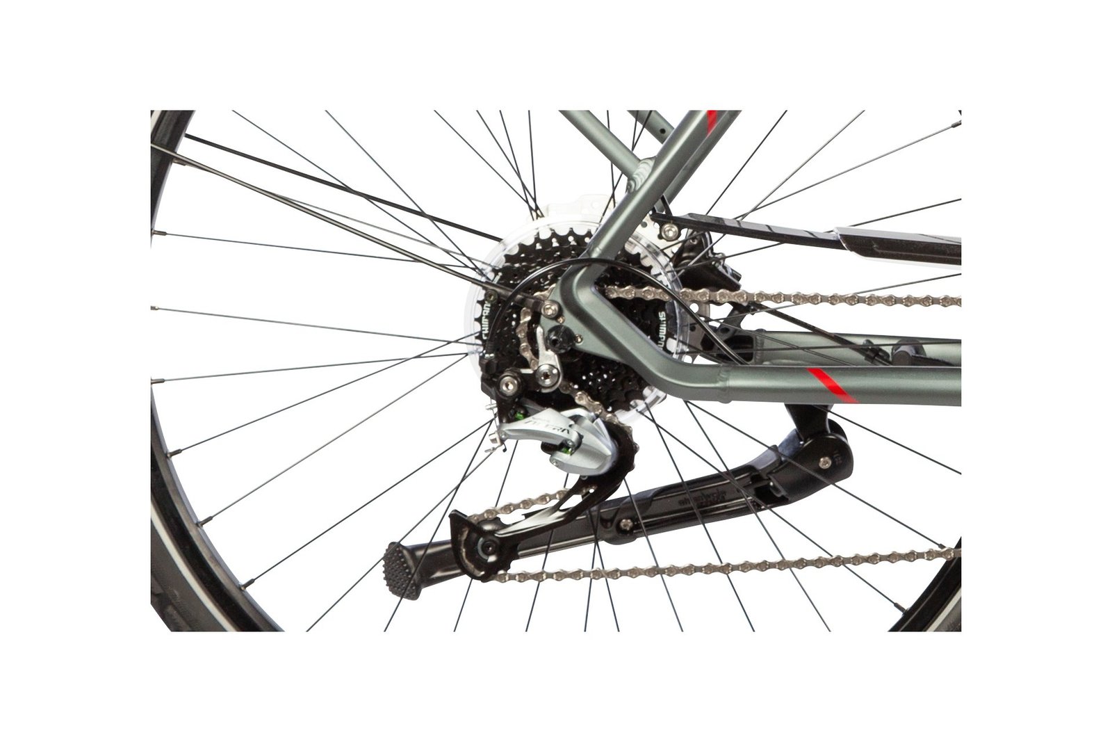 | Nabe hinten : | Shimano FH-TX505-8, 8-fach, Schnellspanner, Center Lock Bremsscheibenaufnahme, Einbaubreite: 135mm |