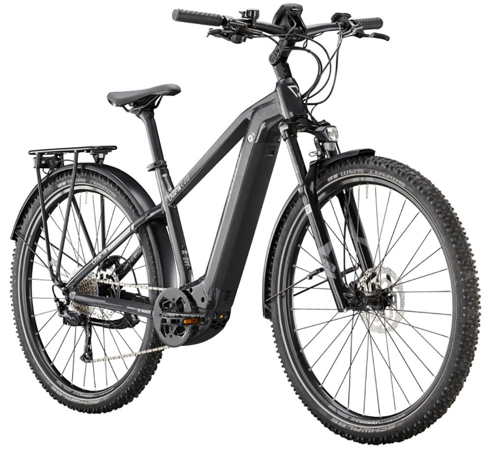 Das Cairon C von Conway ist ein sportliches E-Bike mit Bosch Performance Line CX Antrieb für Pendler, das dich dank Vollausstattung auf dem täglichen Weg zur Arbeit und zurück sauber hält, aber auch auf leichten Offroadpisten mit seinen sportlichen Eigenschaften überzeugen kann.