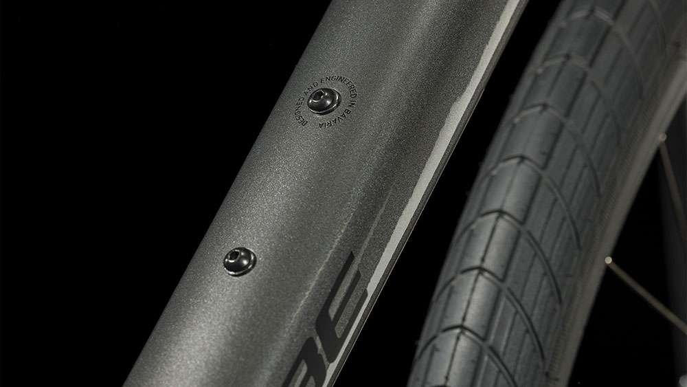 Die Fahrradkuriere der 80er und 90er waren nicht ohne Grund mit Mountainbikes in der City unterwegs, insofern hat CUBE sich bei der Entwicklung des Hyde auch an ihren 29er Hardtails orientiert. Doppelt konifizierte Aluminiumrohrsätze bilden eine stabile, haltbare, leichte und agile Rahmenstruktur, die dank nahtlos integrierter Montagepunkte die individuelle Nachrüstung mit Gepäckträger und Schutzblechen ermöglicht. Außerdem bietet sie genügend Platz für zwei Trinkflaschenhalter – vor allem auf längeren Touren ist man dadurch immer optimal mit Flüssigkeit versorgt. Schließlich komplettiert eine schlanke, steife Gabel den Rahmen, ihr Spezialgebiet: ein knackiges, präzises Lenkverhalten in Kombination mit wenig Gewicht und einem eleganten Look.