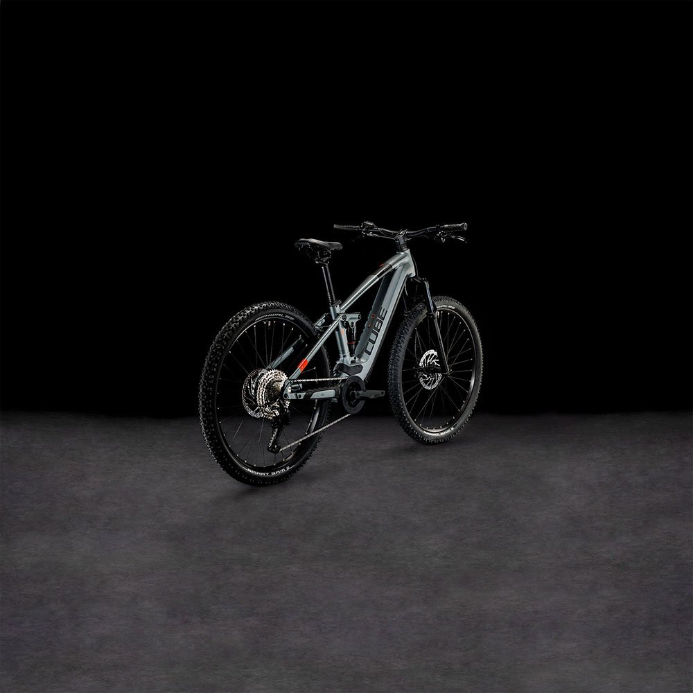 Außerdem hat Cube dem Bike hydraulische 4-Kolben Scheibenbremsen mit größeren Rotoren am Vorder- und Hinterrad spendiert, welche die griffigen 2.6 Zoll Schwalbe Reifen kontrolliert und sicher verzögern. Und dank RockShox Komplettfederung kleben Letztere förmlich auf dem Trail. Fazit: Wer Trail-Riding liebt, wird begeistert sein!